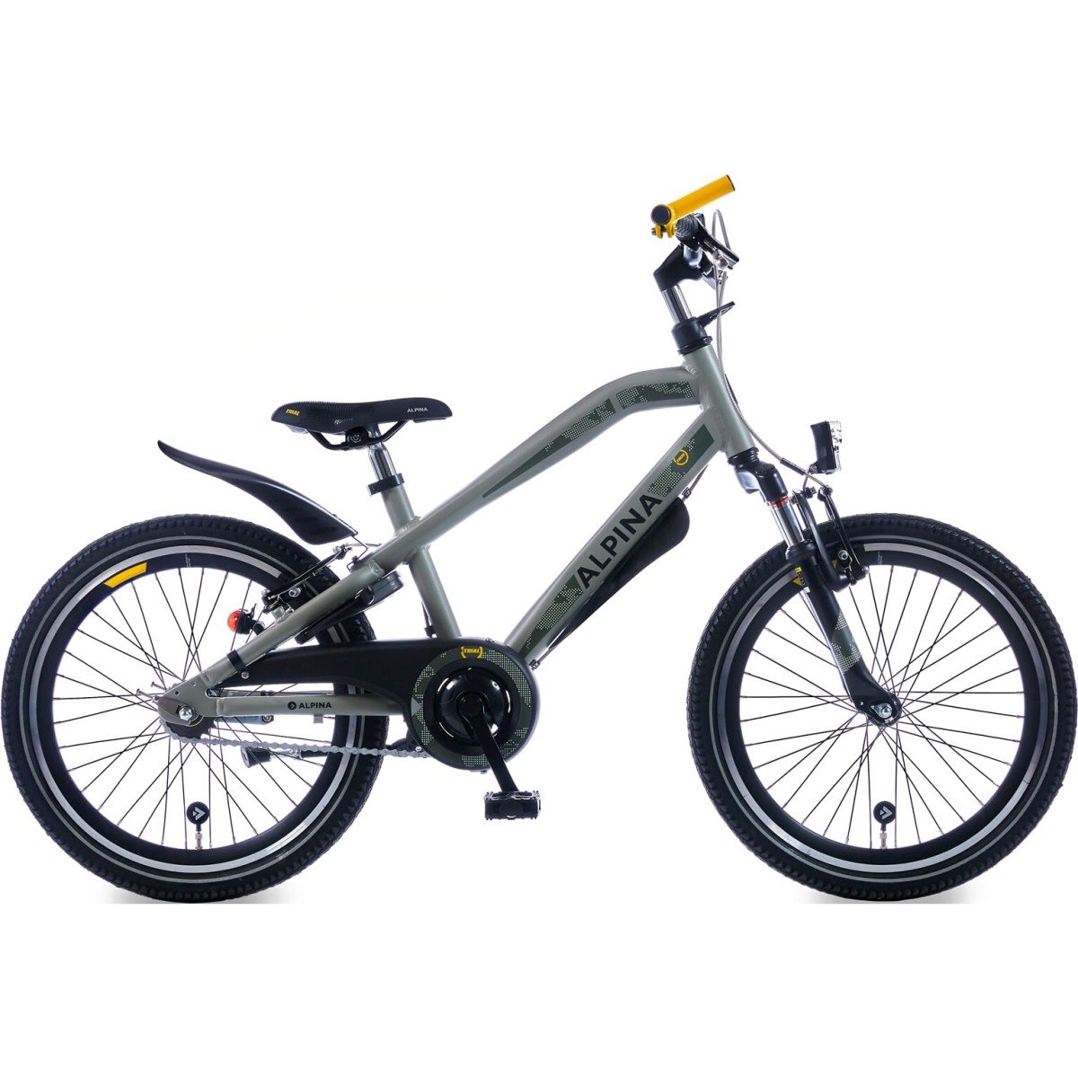 Alpina fiets Trial Jongens, 22inch. Kleur: Desert Grey Matt. Uitgerust met V-brakes voor en achter en achter een remnaaf, aluminium frame. Kleurnummmer: RAL 7023 CC Matt.